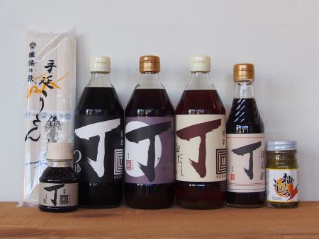 白だし・つゆ・ぽん酢・柚子胡椒・手延べうどんに、