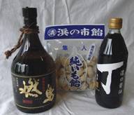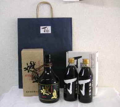 人気焼酎・燃島と合う濃口醤油のセット。